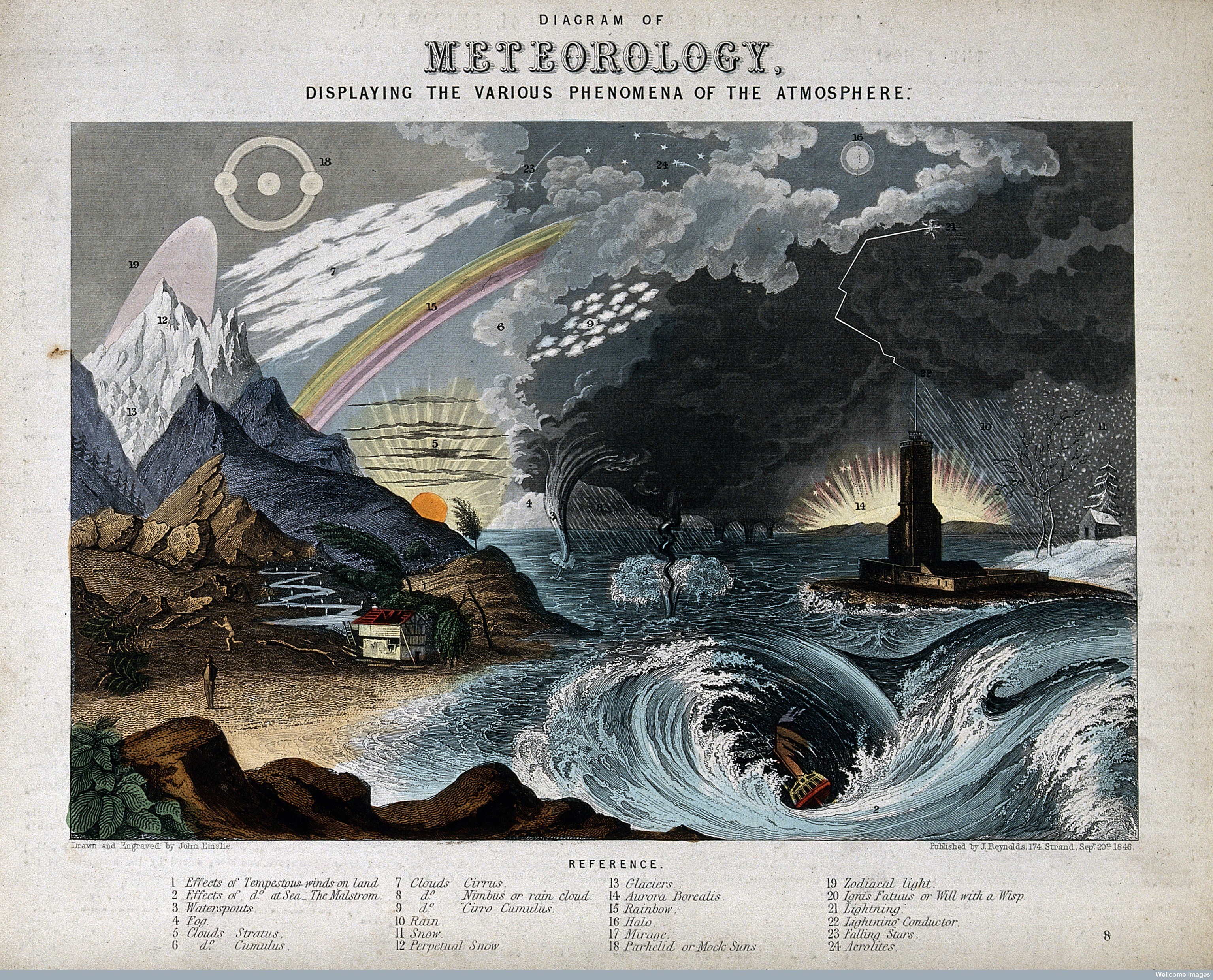 The site recently featured a number of beautiful colored engravings on scientific topics by John Philipps Emslie, a Victorian age illustrator.  I find his work beautiful and strangely modern in the methods he uses to impart information. Reproduced above is his Diagram of Meteorology.  Retronaut has a couple of collections of his work.