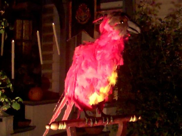 The next year Fawkes paid a visit. I used Halloween as an excuse to learn a bit of Arduino programming to allow Fawkes to move his head and open and close his beak. A huge project–I don’t want to glue as many feathers on anything ever again. Between Halloween, Fawkes resides in our front parlor. Some Victorian homes have a stuffed peacock, we have a phoenix.